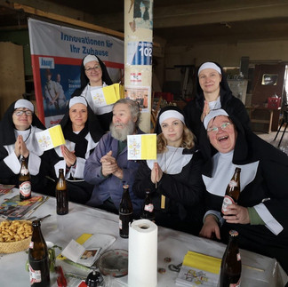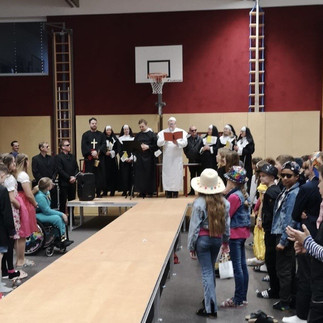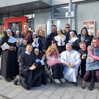 Traditionell startete am Faschingsdienstag wieder der Kartenvorverkauf. Der Run auf die Karten für unser diesjähriges Stück „Dem Himmel sei Dank!“ war wieder enorm und die Mitglieder an der Vorverkaufsstelle am Marktplatz hatten alle Hände voll zu tun. Was die Redaktion aber nicht sicher sagen kann ist, ob der Vorverkaufsstart für das Theaterstück oder die kurzfristig angekündigte Papstaudienz das große Interesse der Euratsfelder hervorrief. Kurz nach 9Uhr war es dann nämlich so weit: Papst Christopherus I erschien in seinem Papamobil am Markplatz und segnete die Gemeindebürger und verteilte das Aschenkreuz. Zusätzlich zeigte die Kirche mit einem mobilen Beichtstuhl ihren Innovationsgeist. Pater Johann nahm vor Ort die Beichte ab und erlöste viele von Schuld und Sünde – Gerüchten zu Folge ist der Bedarf an einem Faschingsdienstag hier größer als an anderen Tagen. Dem nicht genug, besuchte der Papst mit seinem Gefolge dann auch noch einige Euratsfelder Betriebe, die Mittelschule und das Gemeindeamt. Am Nachmittag bildete ein feierlicher Einzug, gemeinsam mit der Blasmusikkapelle, auf den Marktplatz einen würdigen Abschluss der 1. Euratsfelder Papstaudienz.